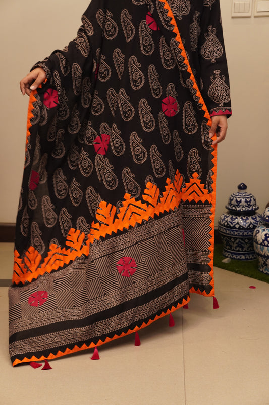 Heritage Glow – Magenta & Orange Ajrak Duppatta