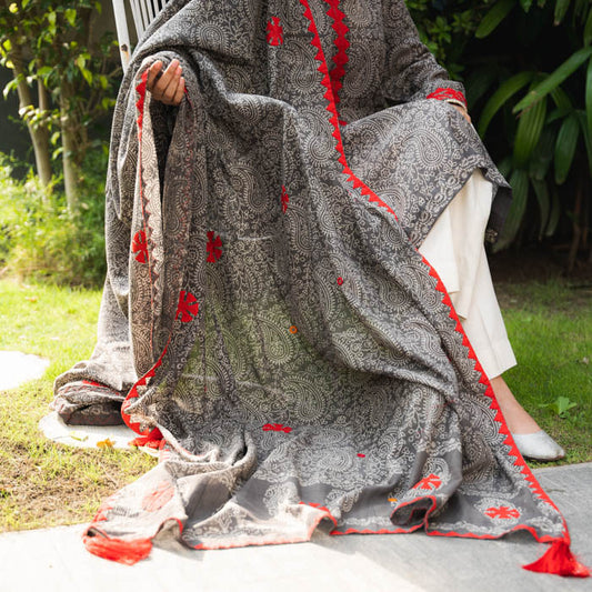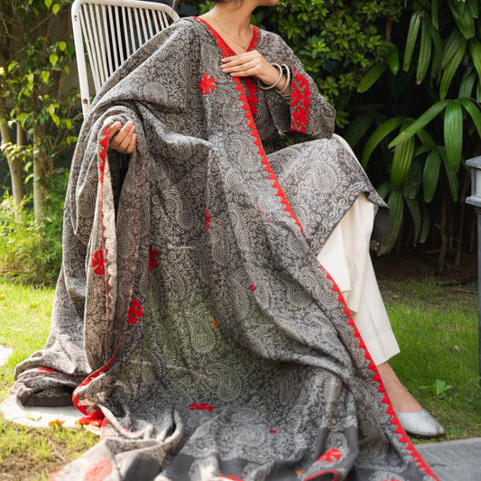 Crimson Threads – Grey Duppatta with Red Appliqué