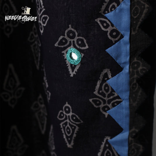 Modern Ethnic Kurta Set – Blue with Vibrant Applique Border