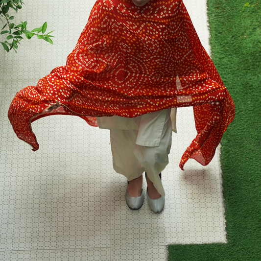 Sindh Serenity – Red Appliqué Ajrak duppatta