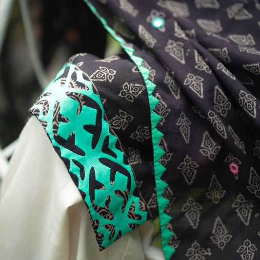 Teal Whisper – Black & Teal Appliqué duppatta