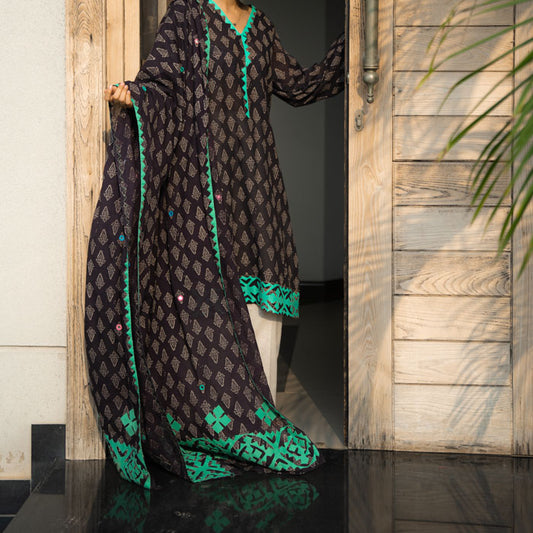 Sindh Serenity – Red Appliqué Ajrak Suit