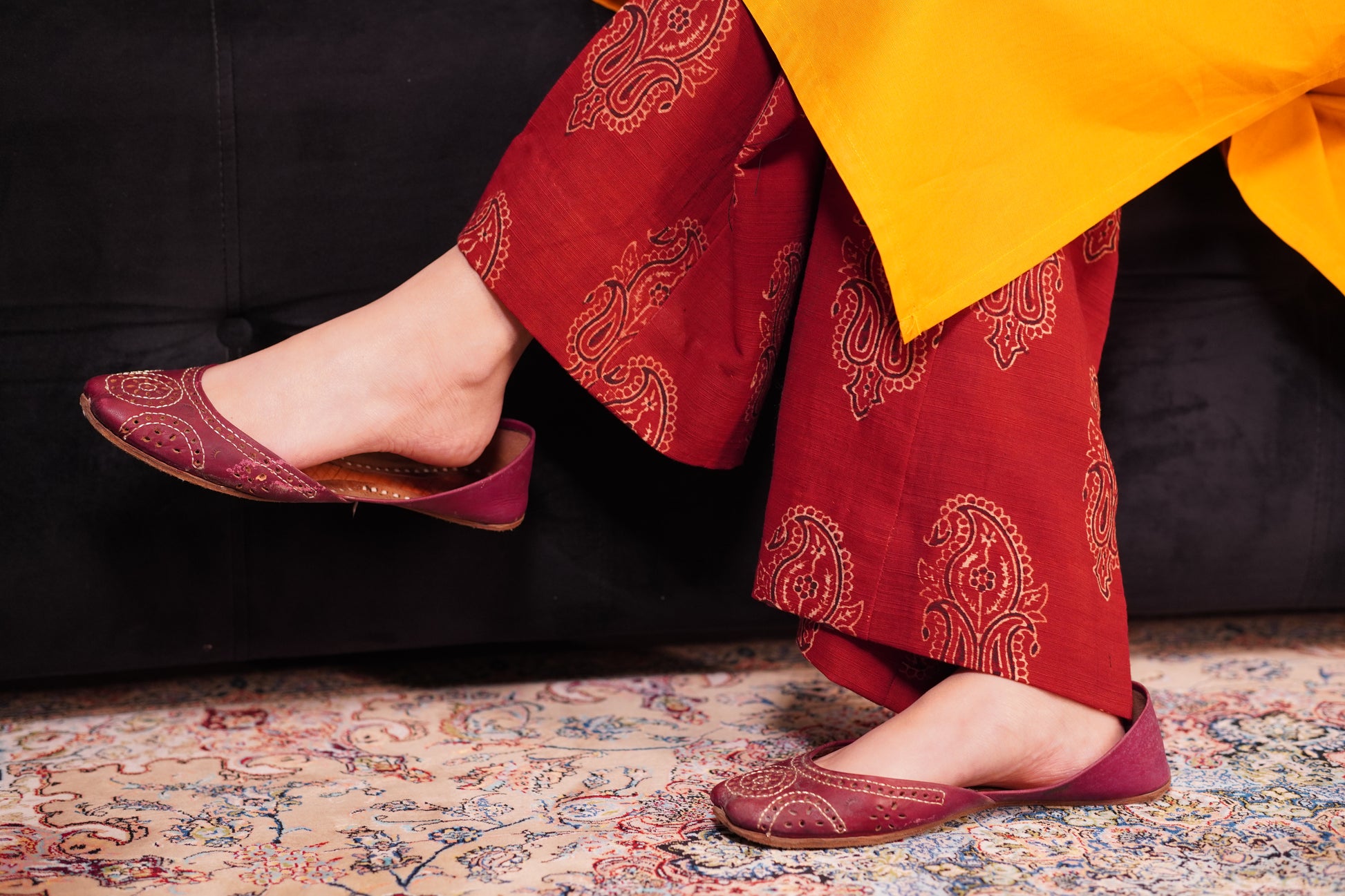 - Wide-leg Ajrak pants for a relaxed, modern fit