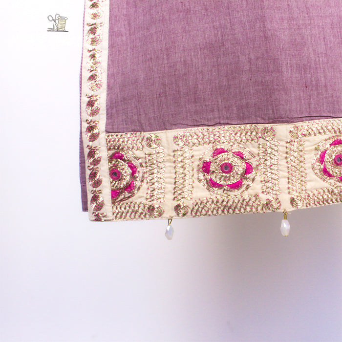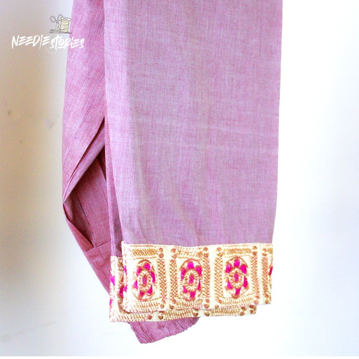 Add a touch of elegance to your summer wardrobe with this stylish two-piece suit, crafted from comfortable and breathable summer khaddar. The soft pink color of the suit is beautifully enhanced with intricate gold and pink embroidery work, creating a harmonious and luxurious look. The shirt’s length can be easily adjusted to your desired fit, offering both comfort and style. Paired with matching trousers, this ensemble is perfect for a variety of occasions, combining traditional charm with modern appeal.